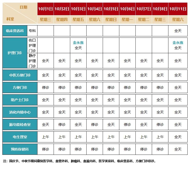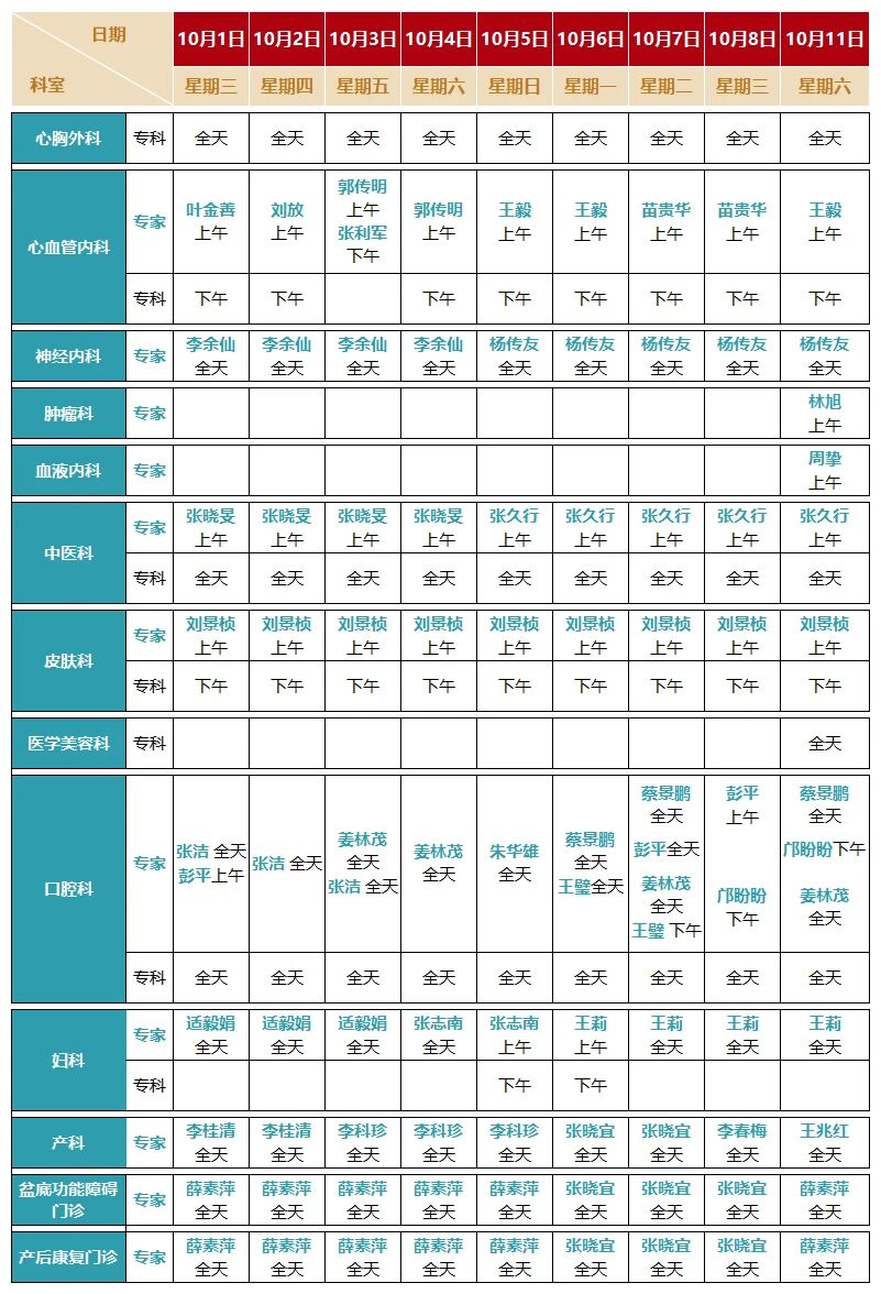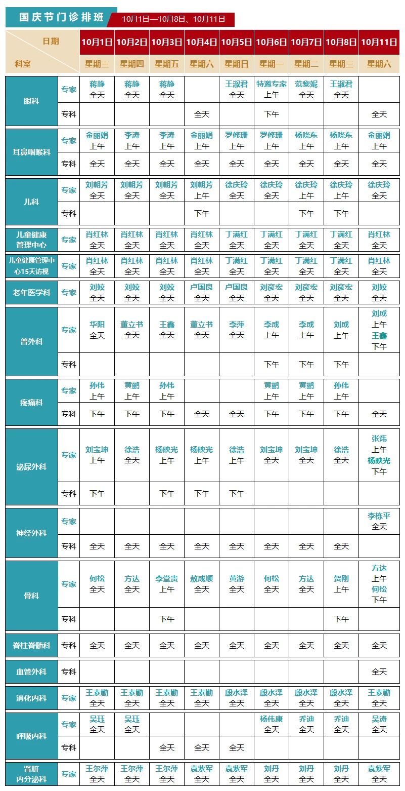 【双节我在岗】少妇色情 中秋国庆、10月门诊排班表
