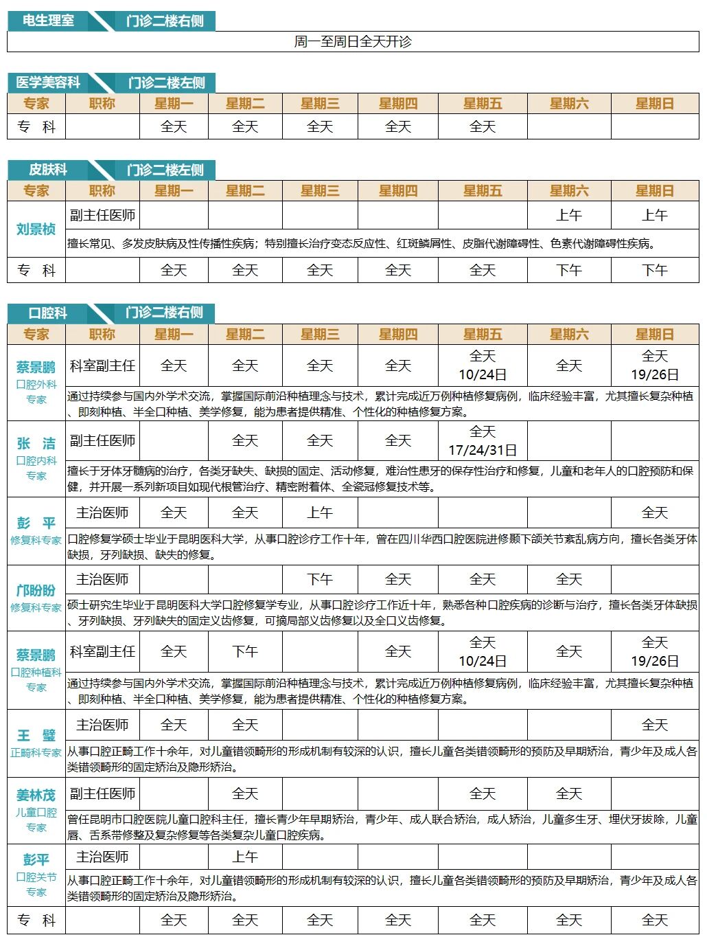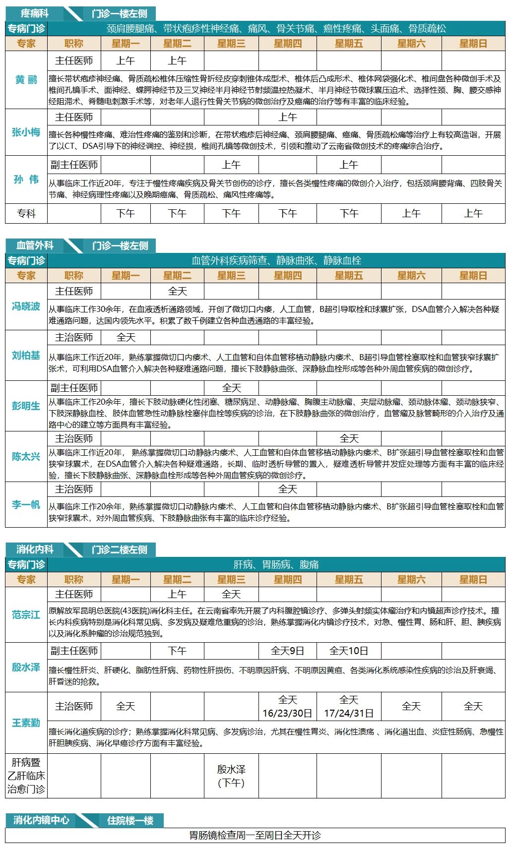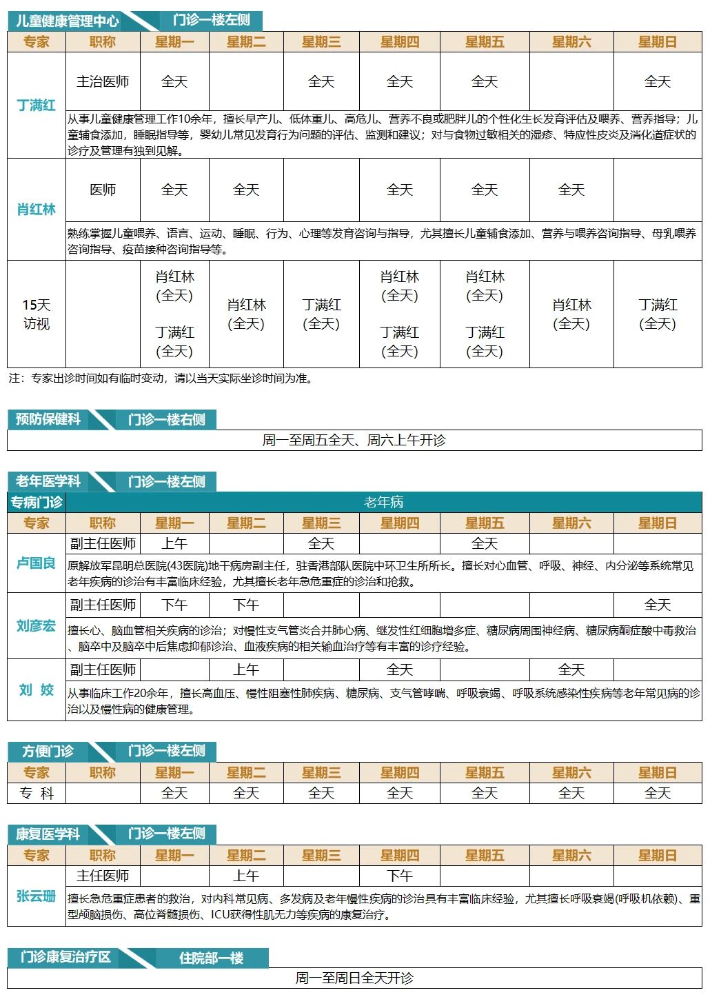 注:出诊专家如有临时变动以当天实际坐诊为准。