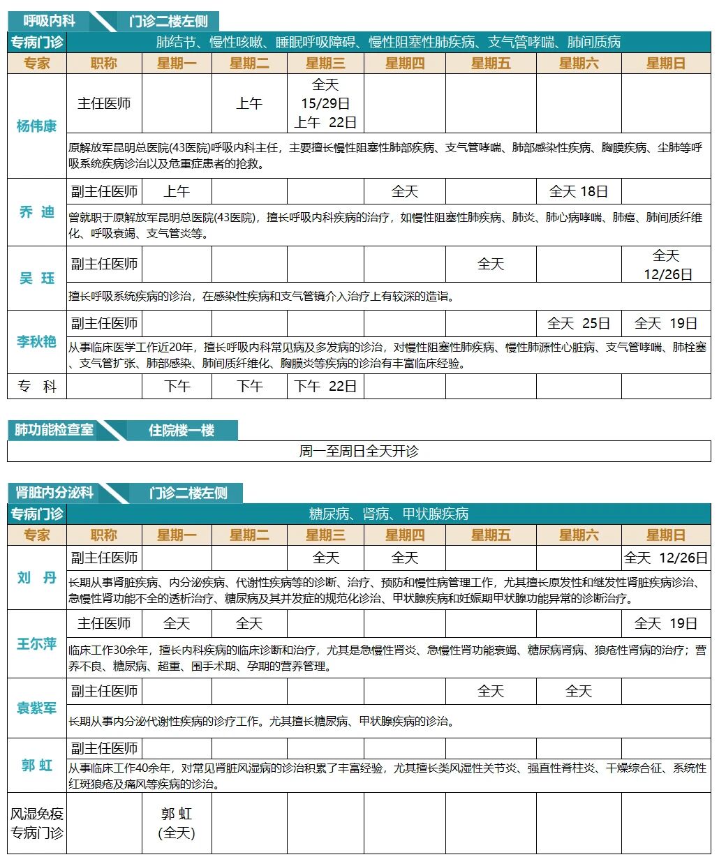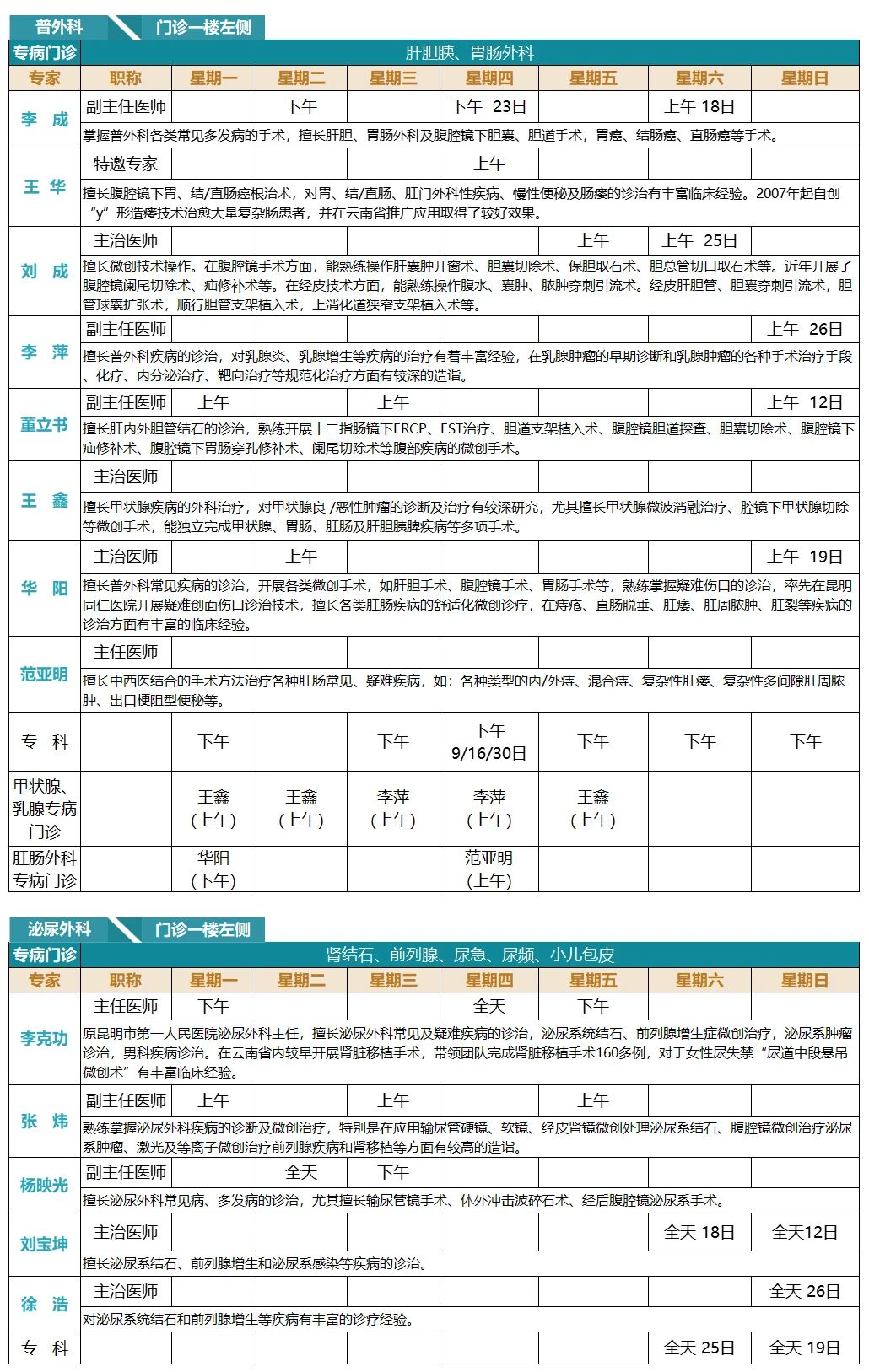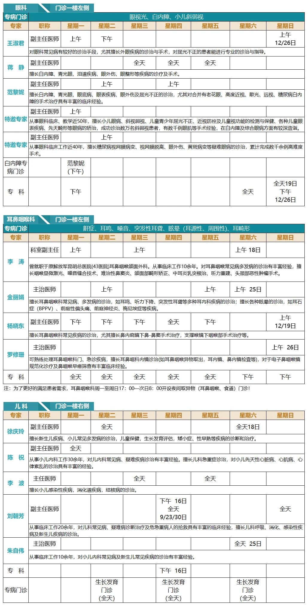 注:出诊专家如有临时变动以当天实际坐诊为准。