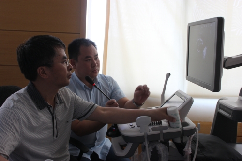 本次学习班的重要内容为“中晚期妊娠的三维(四维)示教和检测方法的演练”,学员在老师的指导下,亲自上机练习,以此来快速掌握中晚期妊娠胎儿的四维检查方法及对胎儿畸形的筛查和诊断。其后,由于设备资源的问题,最后只优选了15人参加了为期一周的学习班,并于6月28日经过严格的考核,对合格人员发放了结业证书。