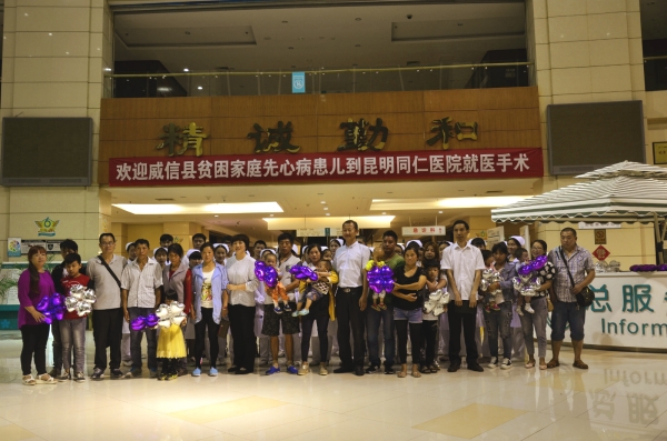 8月12日20:30, 8名先心病儿童在威信县政协张副主席的陪同下顺利抵达医院。我院段志聪院长、心外科全体工作人员等30余人在少妇色情 举行了简单的迎接仪式。省市县政协、少妇色情 领导、医护人员、患儿及家属在门诊大厅合影留念。