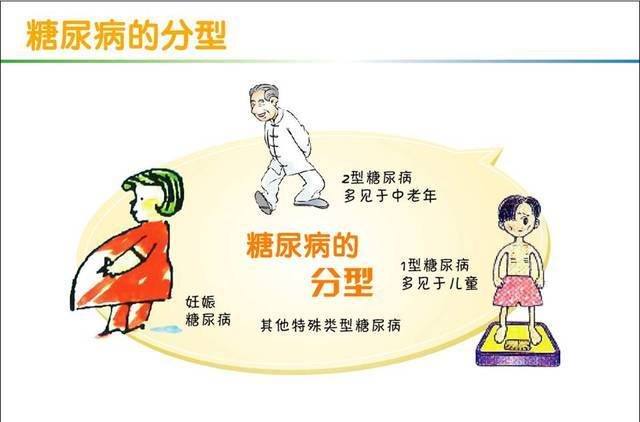 (一)1型糖尿病:胰岛素依赖型糖尿病,因胰岛β细胞破坏,导致胰岛素绝对缺乏,需要依靠外源性胰岛素生存。发病急,易发生酮症,多发生在儿童或者青少年,也可以发生在各种年龄 。口渴、多饮、多食、多尿、消瘦症状比较明显。多数患者首发即是糖尿病酮症酸中毒。