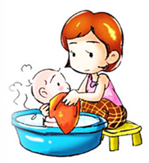 2、温水擦浴或温水浴 :如患儿降温效果不满意,可给予温水擦浴。将门窗关好,不可有对流风或直吹风,室温24-26度之间,水温32-36℃,擦浴过程﹤20分钟,腋窝、肘窝、手心、腹股沟、腘窝处稍用力擦拭,并延长擦拭时间,以促进散热。注意观察患儿的耐受性及皮肤表面有无发红、苍白、出血点、感觉异常等。