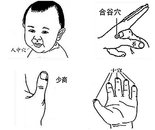 针刺止惊:针刺止惊是既简单又经济有效的止惊方法。 常用针刺穴位:人中、合谷、少商、十宣等。身边无针灸针,也可以用力掐穴位。(针刺穴位请在专业人士指导下进行)同时,保持周围环境安静,尽量少搬动患儿,避免不必要的刺激。