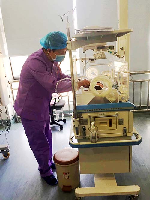 随着一阵急促的电话铃声,新的任务又要启动,妇产科急会诊:早产儿,出生后呼吸不规则伴发绀!正在值班的刘朝芳医生,立即带上听诊器进入产房会诊,同时通知护士做好接收患儿的准备。
