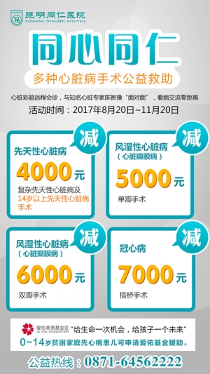 2017年8月20日~11月20日,少妇色情 心外科与云南省远程可视医学中心联合推出“同心同仁——云南贫困家庭心脏病手术大型公益援助活动”。
