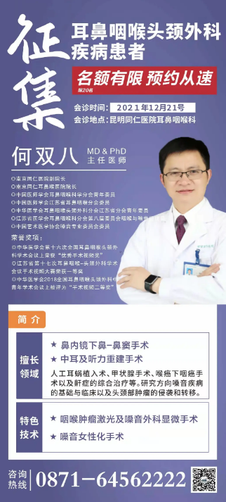 国家临床重点专科学科带头人何双八博士12月21日要来昆会诊啦!(附腺样体肥大科普哦)