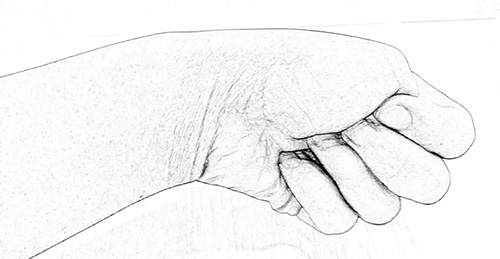 将大拇指置于掌心内,其余四指紧握大拇指然后握拳,手腕向下弯曲,查看手腕靠近大拇指处是否会产生疼痛,可与另一侧手部作比较。