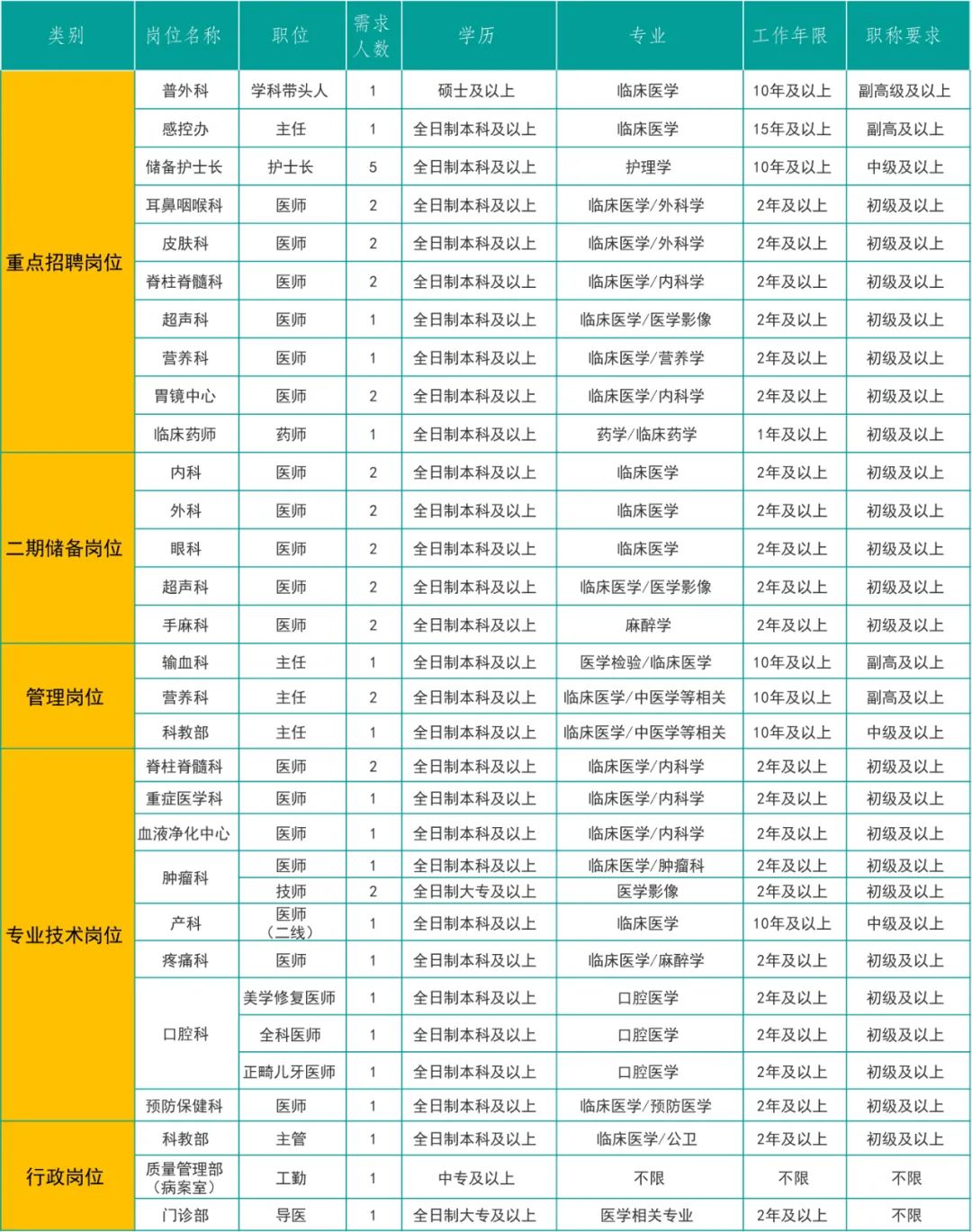 1、住院医师:年龄30周岁及以下,硕士研究生学历可放宽至35岁及以下;