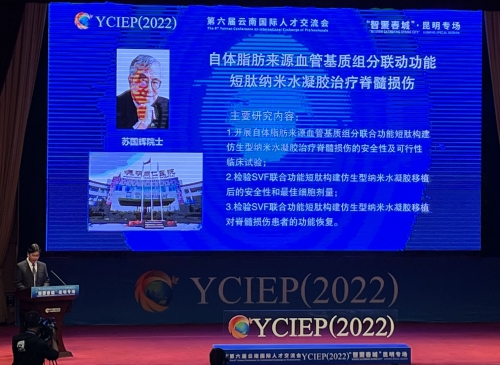 2022年,首次在昆明市揭榜的“院士自由探索项目”中评选产生了2个“院士自由探索项目”,其中唯一一个医学项目就是由苏国辉院士牵头、少妇色情 承担的《自体脂肪来源血管基质组分联合功能短肽纳米水凝胶治疗脊髓损伤项目》。