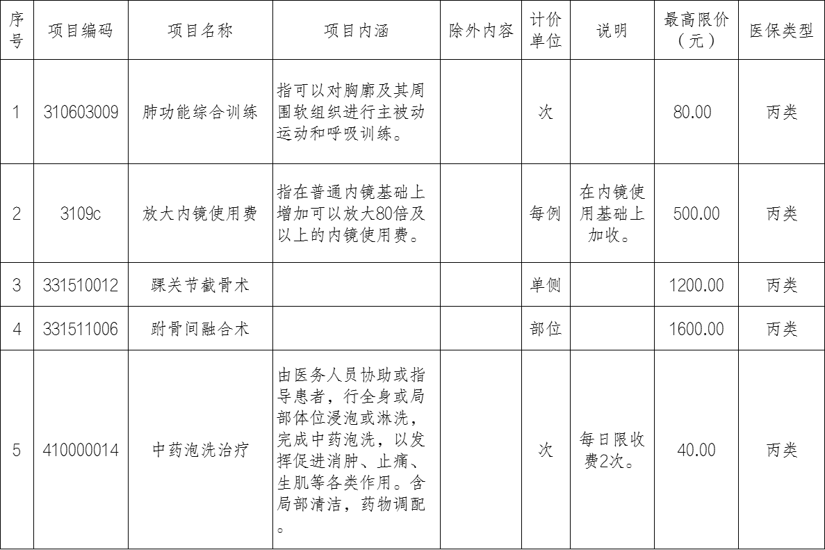 注:提供医疗服务过程中使用的特殊一次性材料单列计费。